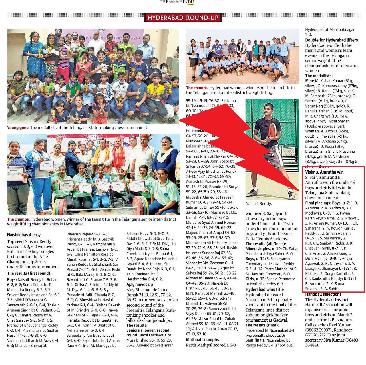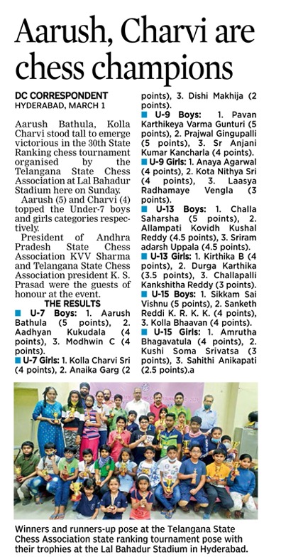 30th Telangana State Ranking Chess Results – 28th Feb 2021